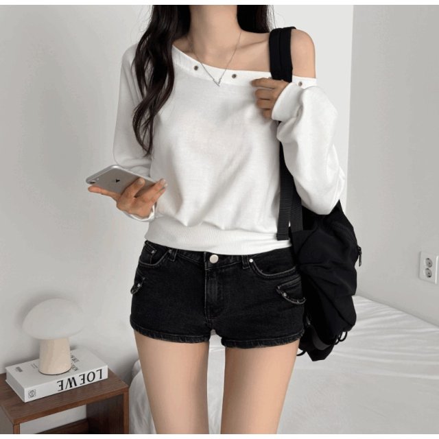 鉚釘單露肩衛衣【6色入】 - 現貨