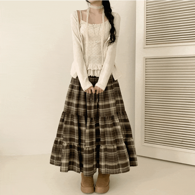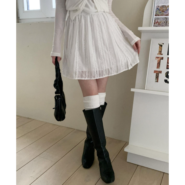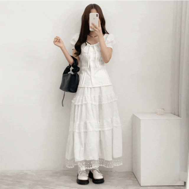 橡筋腰蕾絲蛋糕半身裙 - 現貨