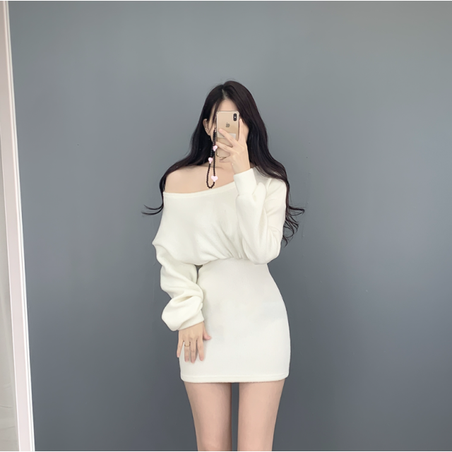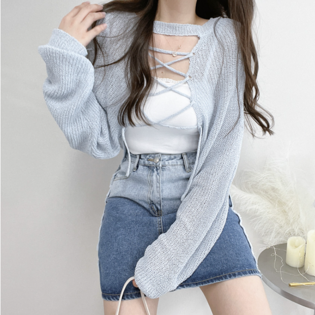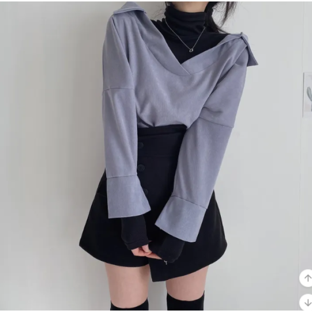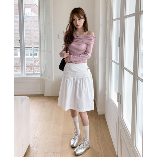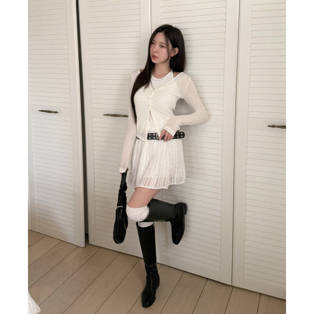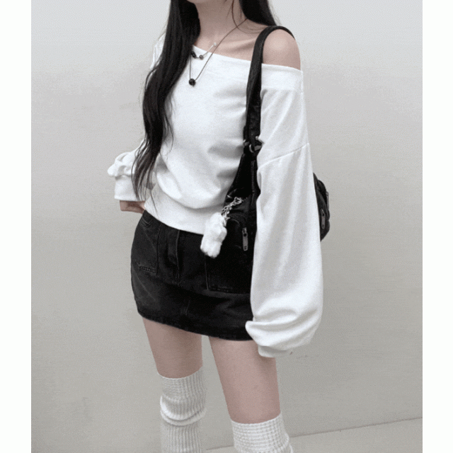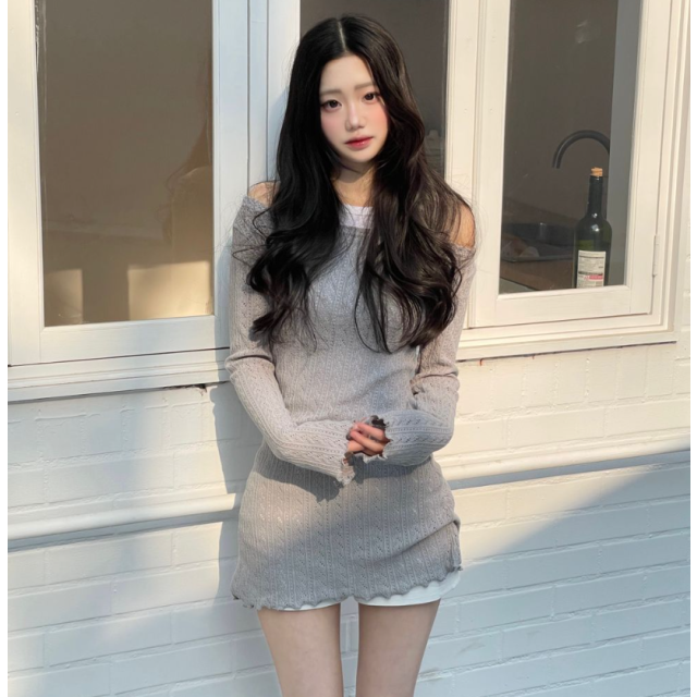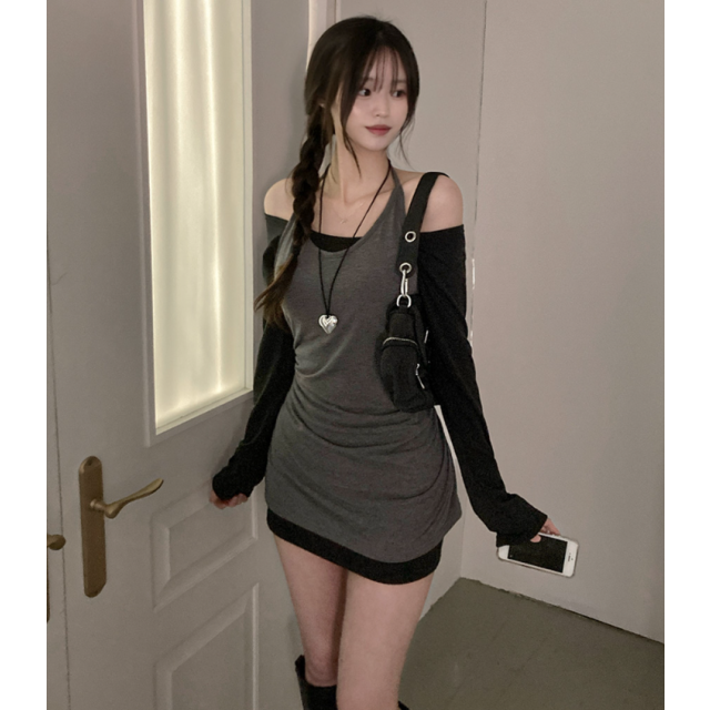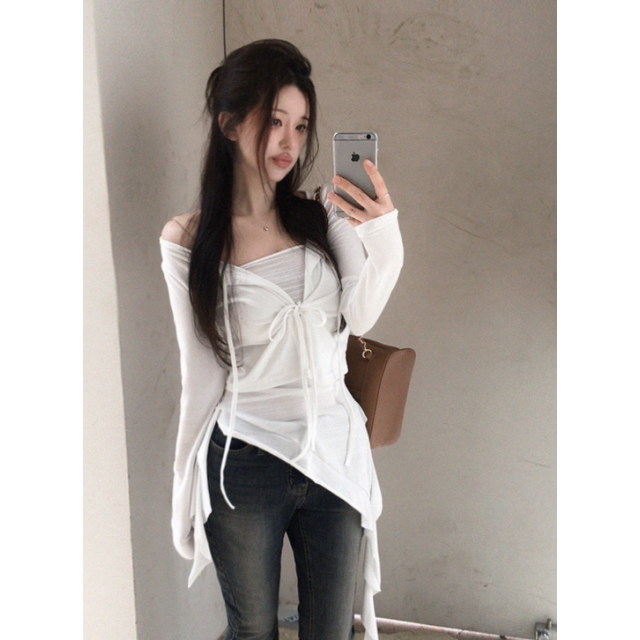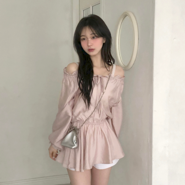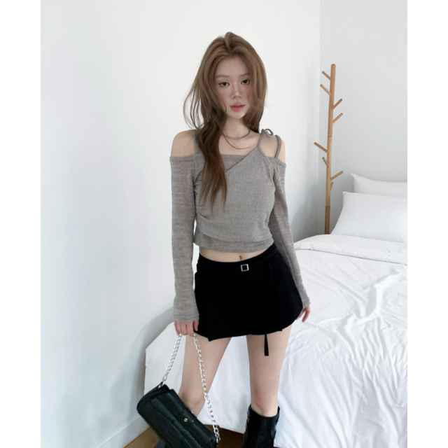 露肩綁帶交衩設計長袖【4色入】 - 現貨