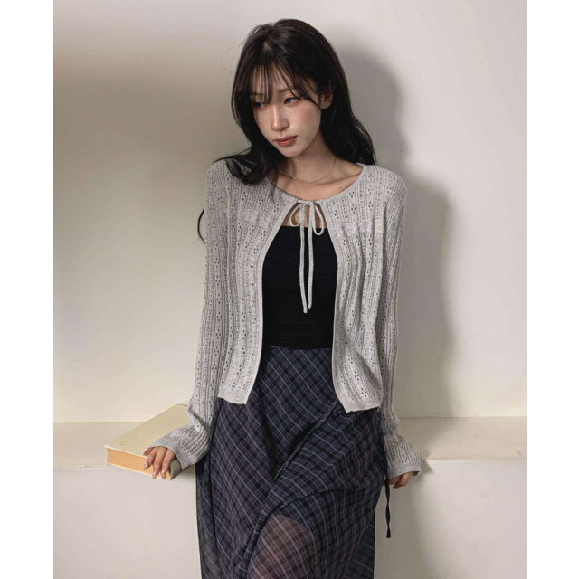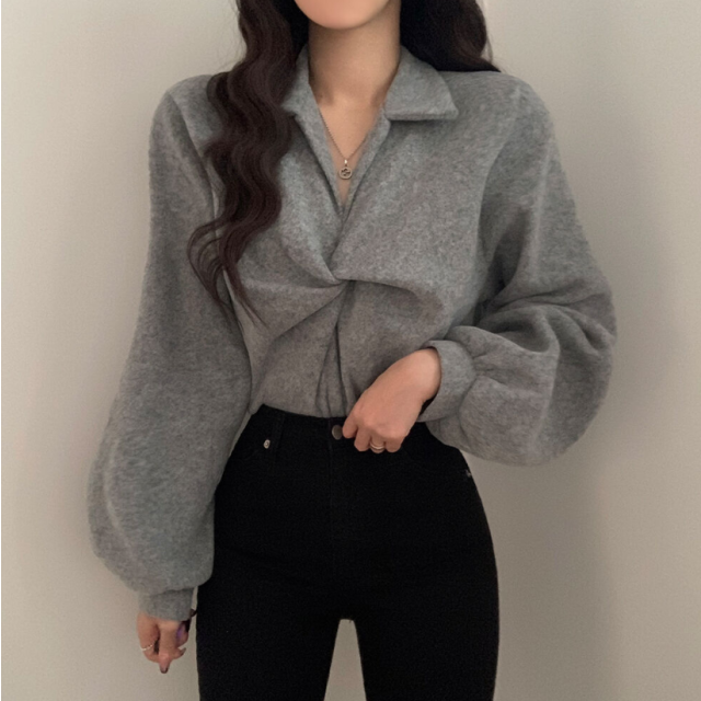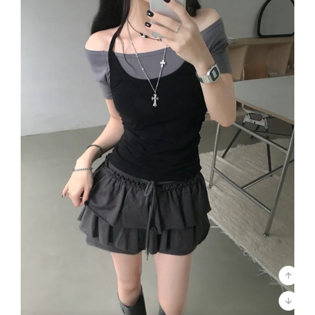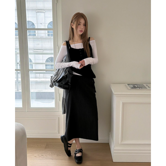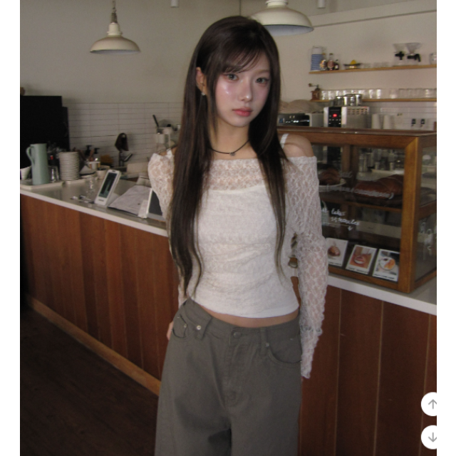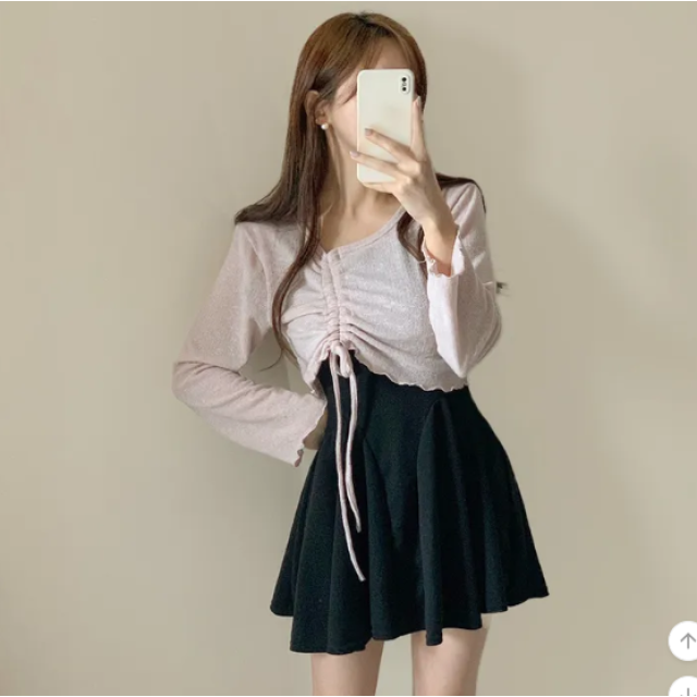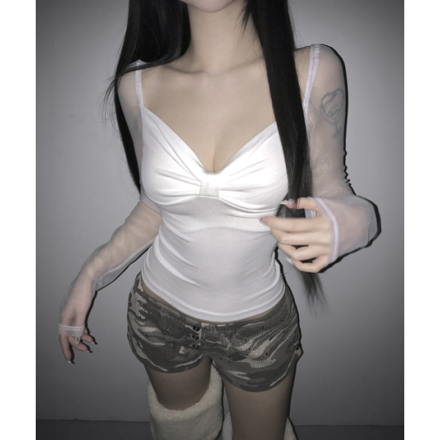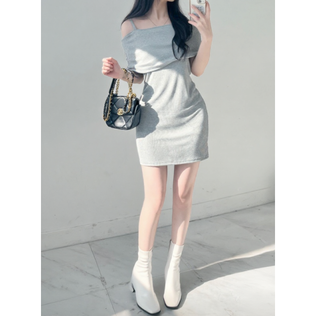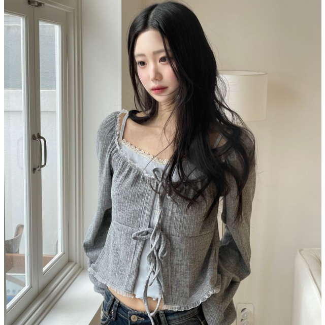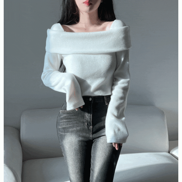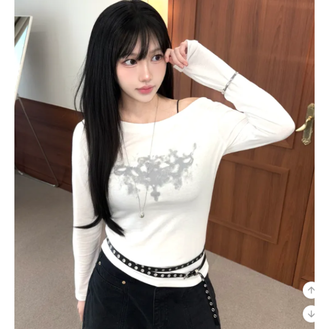露肩綁帶交衩設計長袖【4色入】 - 現貨
