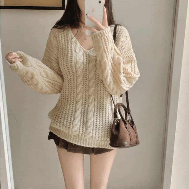 V領麻花寬鬆針織背心【4色入】 - 現貨