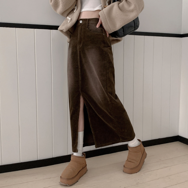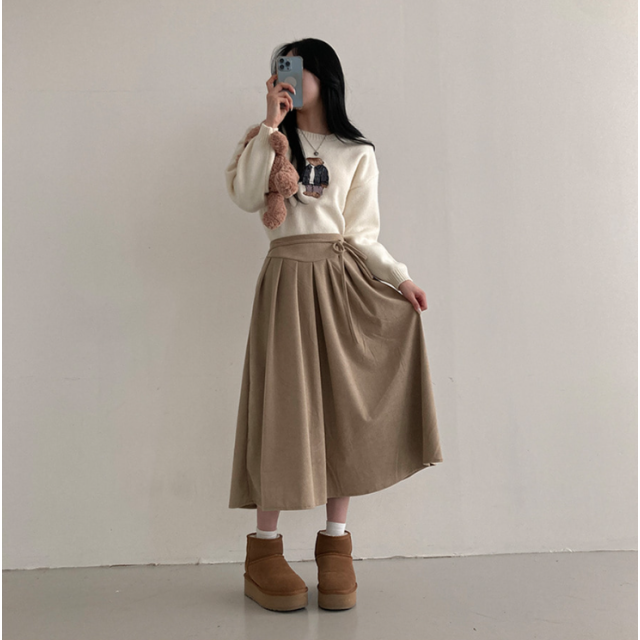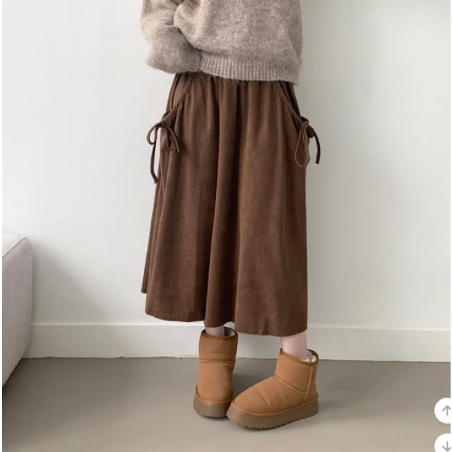 綁帶燈芯絨橡筋腰長裙【3色入】