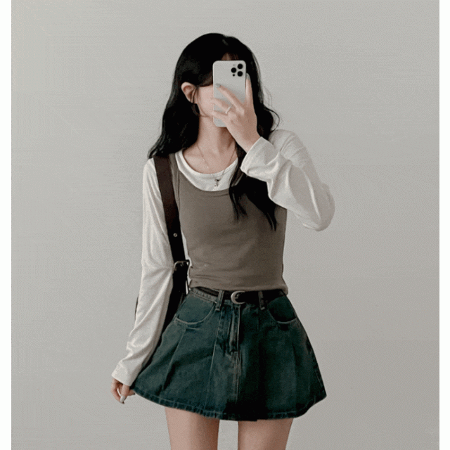 蝴蝶修身假兩件上衣【3色入】 - 現貨