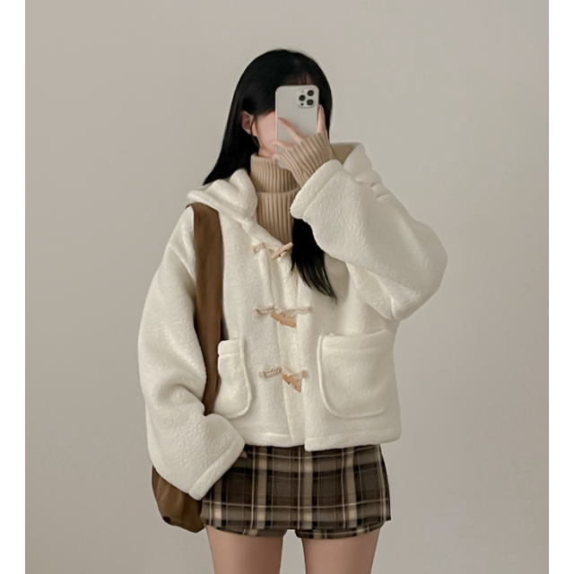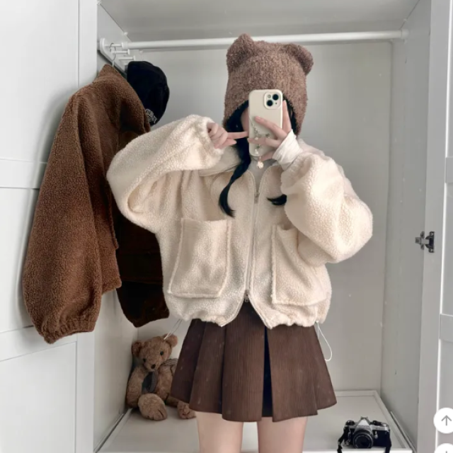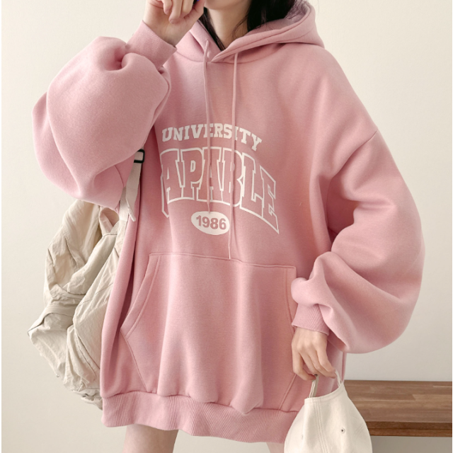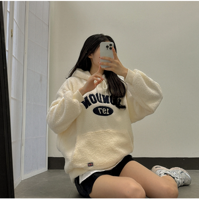 寬鬆像素兔子抓絨連帽衫【3色入】