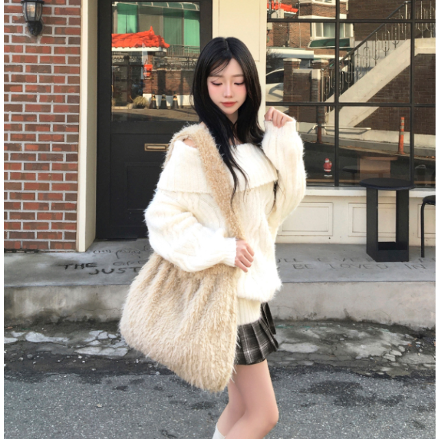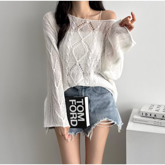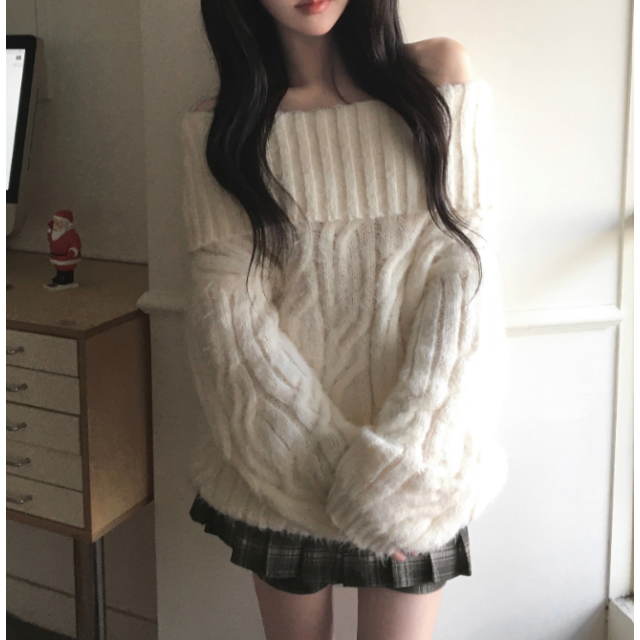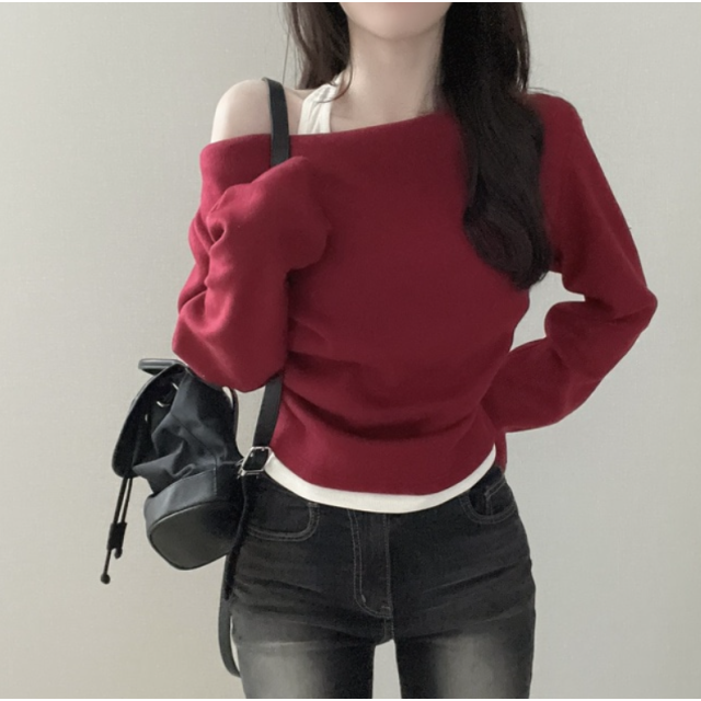 寬鬆單肩側釦長袖針織衫【3色入】 - 現貨