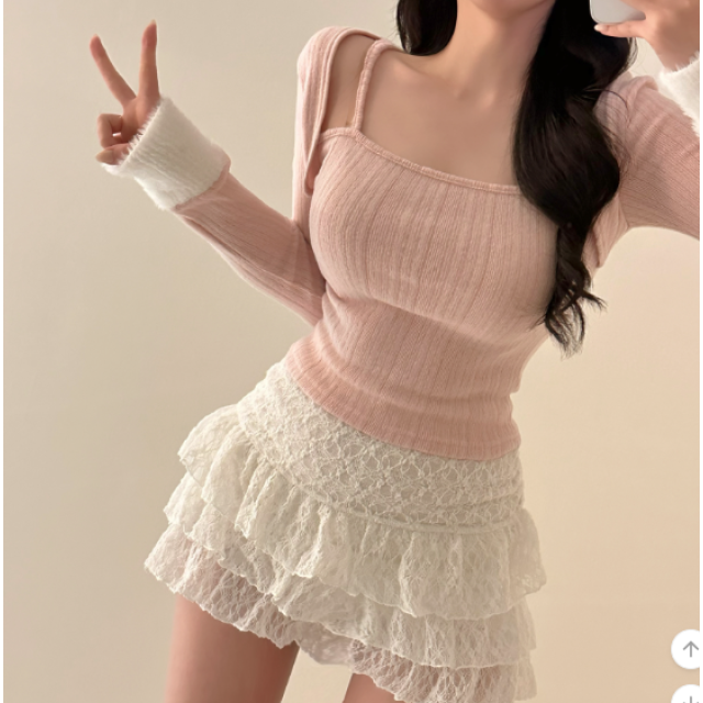 蕾絲吊帶裙配外套【3色入】【附胸墊】