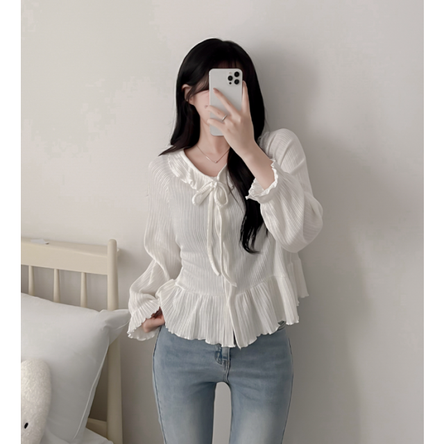 荷葉邊綁帶襯衫【3色入】