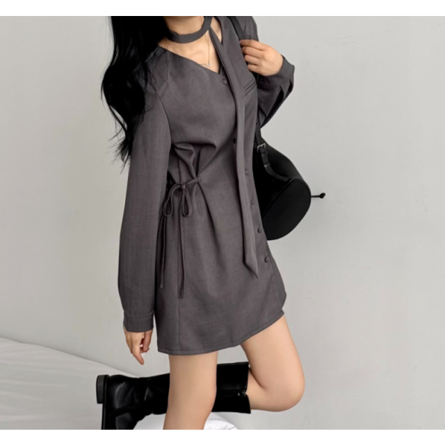 側綁帶西裝面料連身裙【2色入】