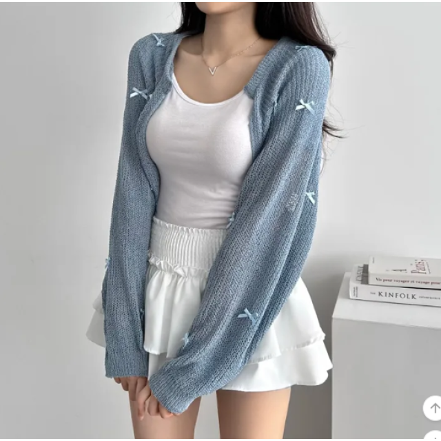 蝴蝶結薄身短款針織外套【5色入】