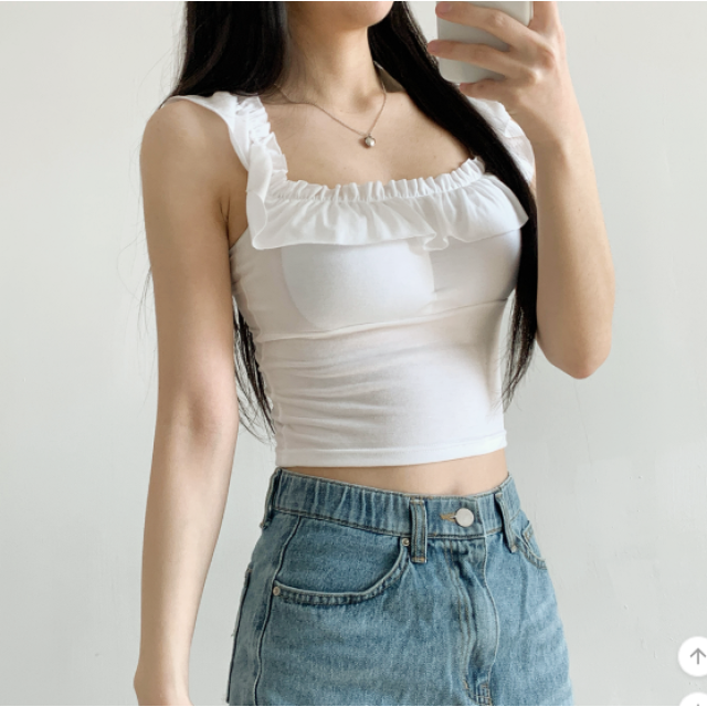荷葉邊吊帶背心【附胸墊】【2色入】