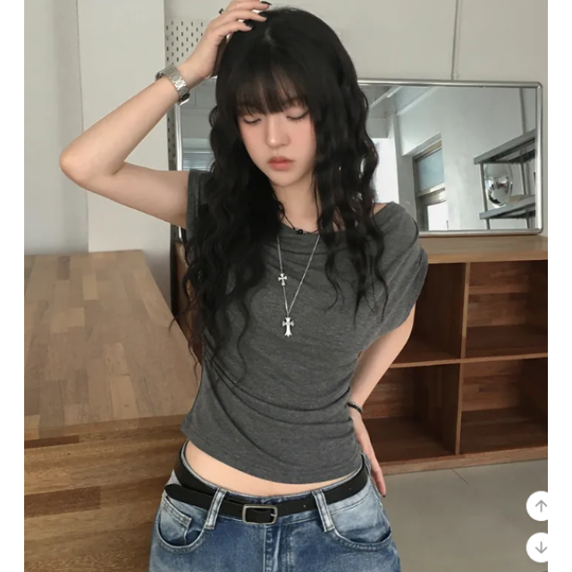 斜肩綁帶上衣 - 現貨