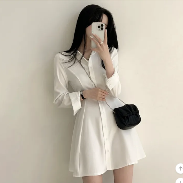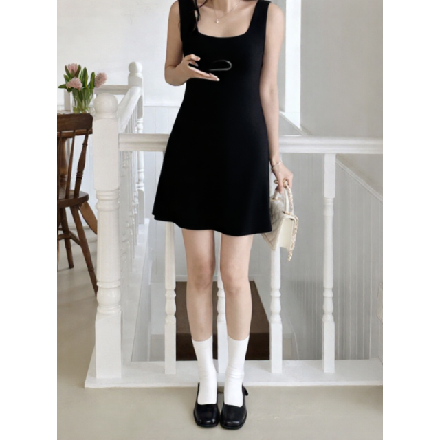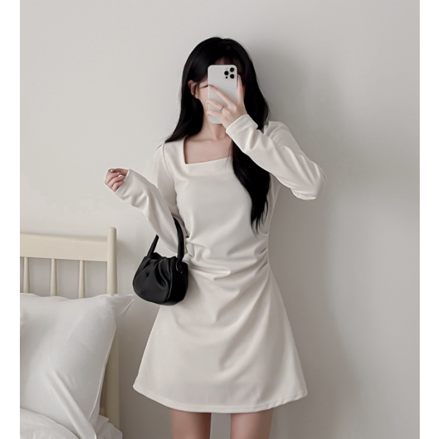 圓領修身褶皺連身裙【5色入】 - 現貨