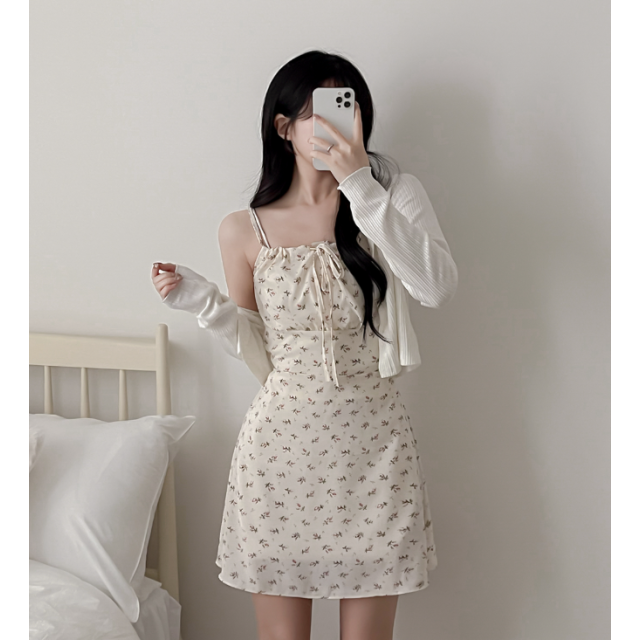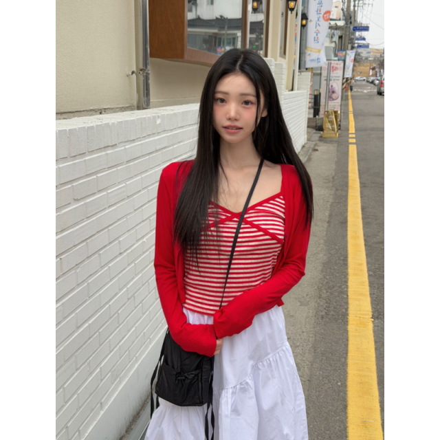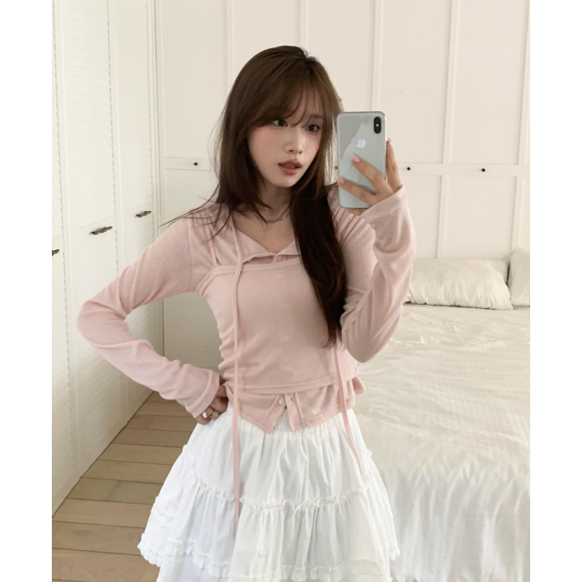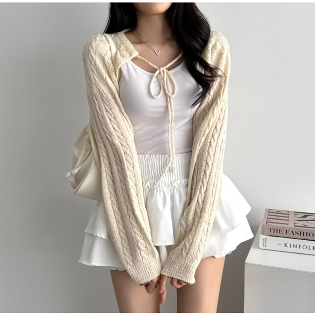 圓領綁帶外套配抹胸不規則上衣【3色入】