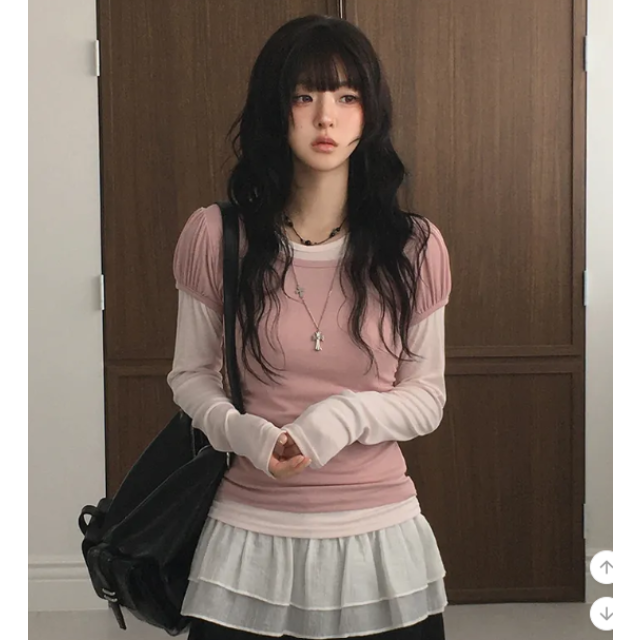 泡泡袖T恤配長袖套裝【可自由配搭】