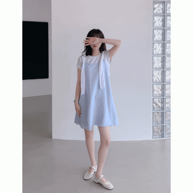 背心長洋裝襯衫疊穿兩件套【2色入】