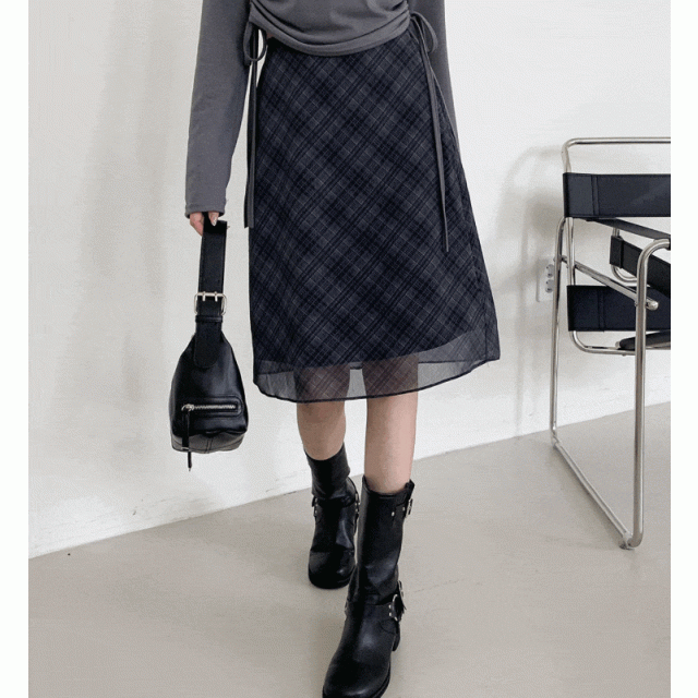 半透視格紋中長半身裙【2色入】