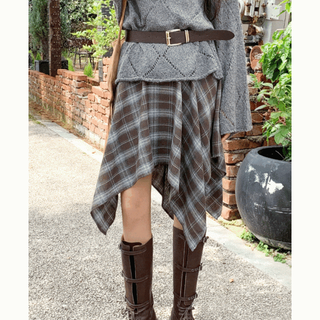 格仔不規則中長裙【2色入】