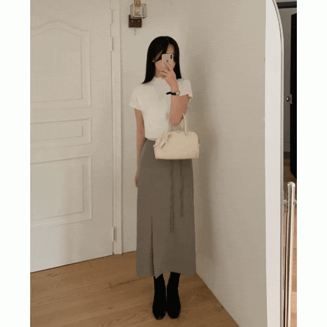 後橡筋腰H型開衩長裙【6色入】