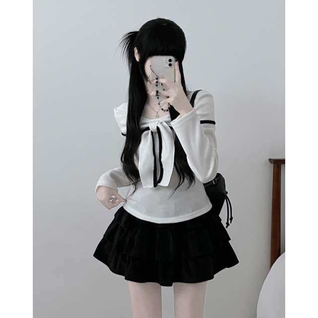 絲帶褶皺短身上衣【3色入】