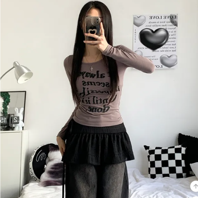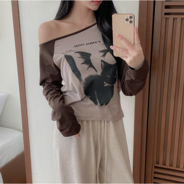 露肩拼接長袖T恤【4色入】