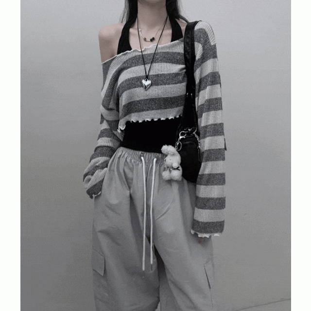 寬鬆撞色間條針織衫【4色入】【男女可穿】