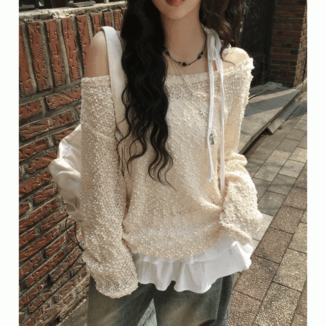 Overfit拼色印花長袖針織衫【3色入】【男女可穿】