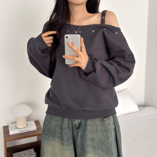 鉚釘單肩帶加絨衛衣【4色入】
