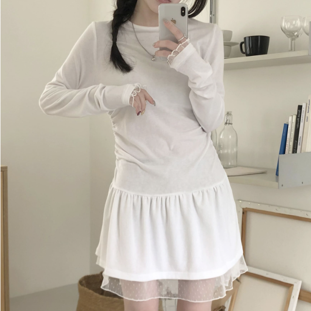 假兩件蕾絲蝴蝶結連身裙【2色入】