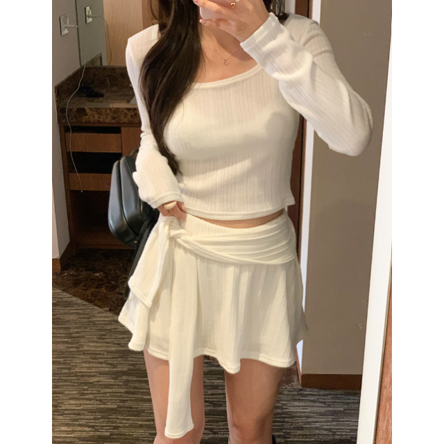 薄身T恤配喇叭綁帶裙套裝【3色入】