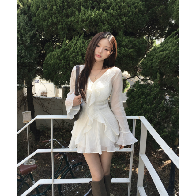 雪紡荷葉邊連身裙【4色入】