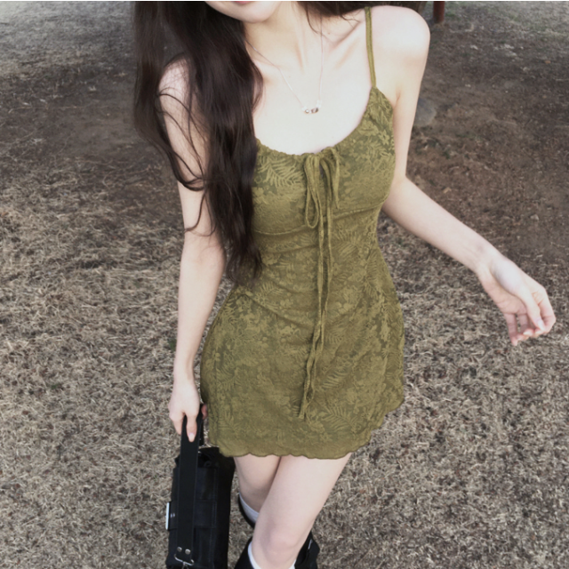 吊帶透視蕾絲荷葉邊裙【3色入】