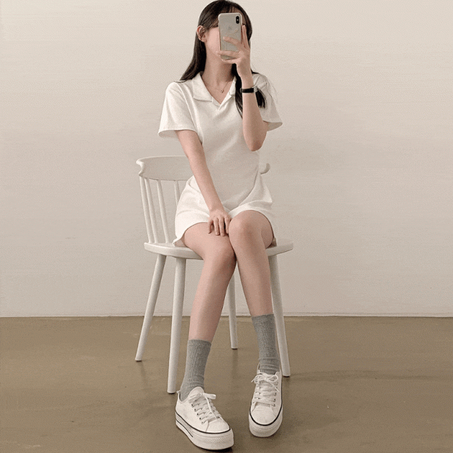 多色簡約綁帶polo連身裙