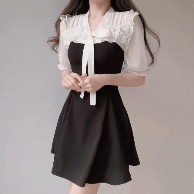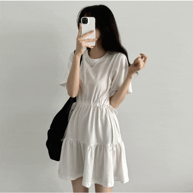 荷葉邊短袖連身裙