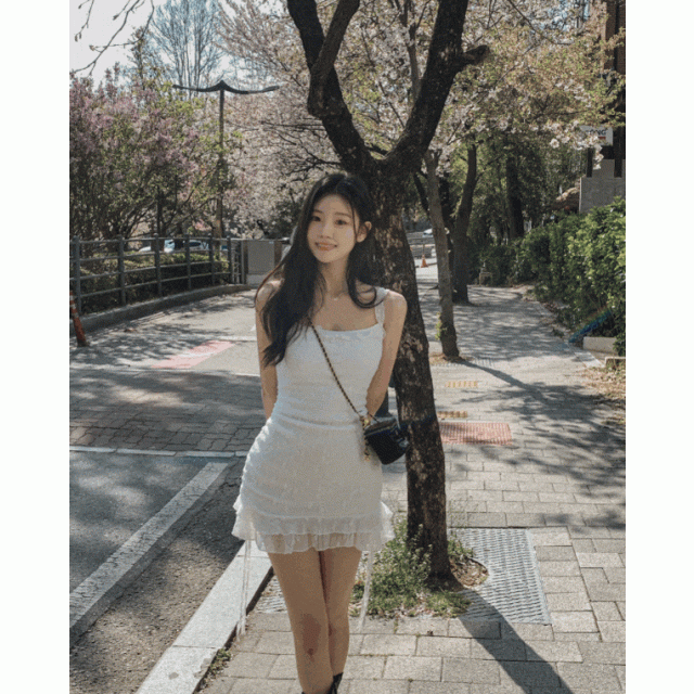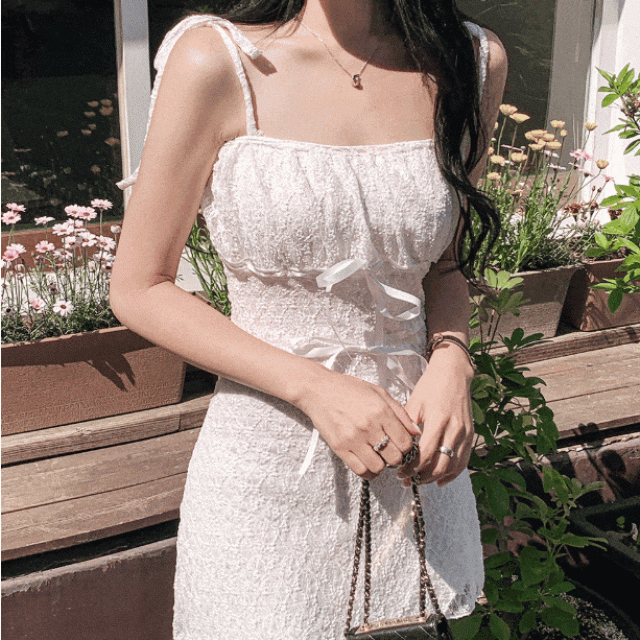 蕾絲吊帶側束繩貼身裙【買一送一】