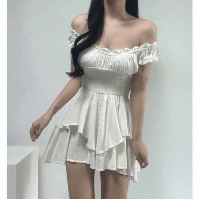 綁帶一字肩連身裙【買一送一】