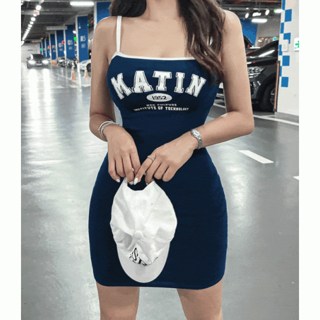 字母拼色吊帶裙