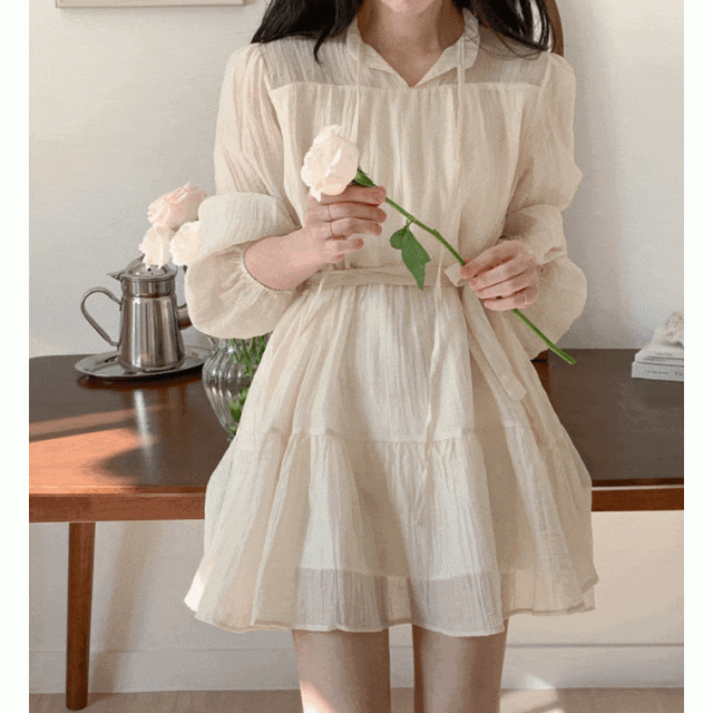 圓領束繩喇叭裙
