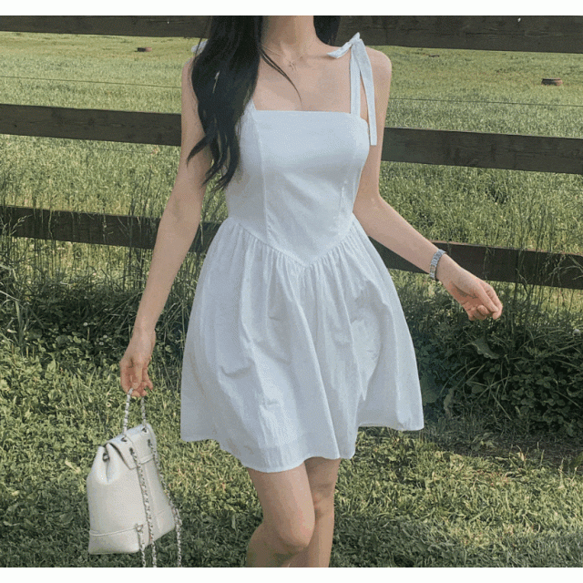 平領綁帶連身裙【3色入】