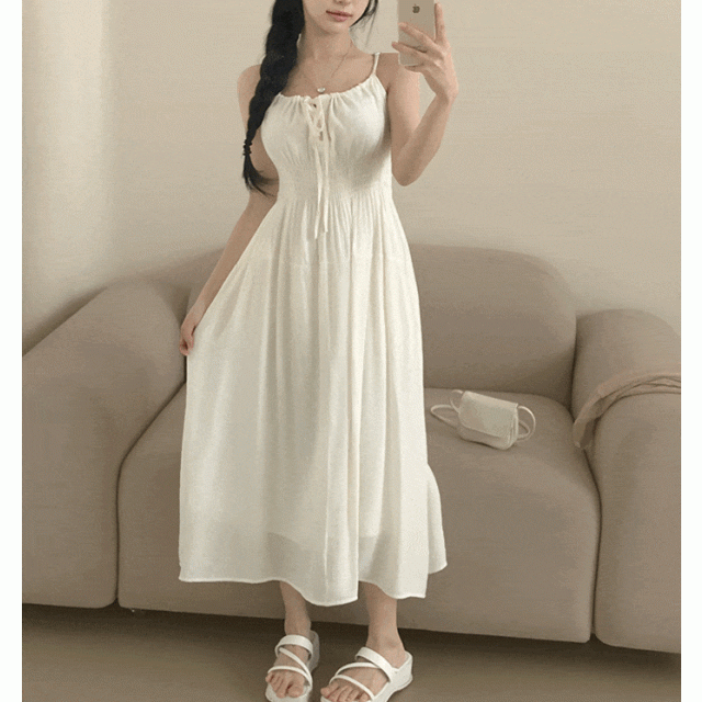 吊帶橡筋腰連身長裙【5色入】
