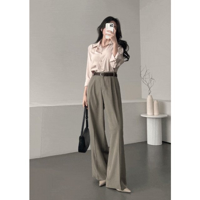 高腰隱藏釦寬鬆西褲【S-2XL】【5色入】