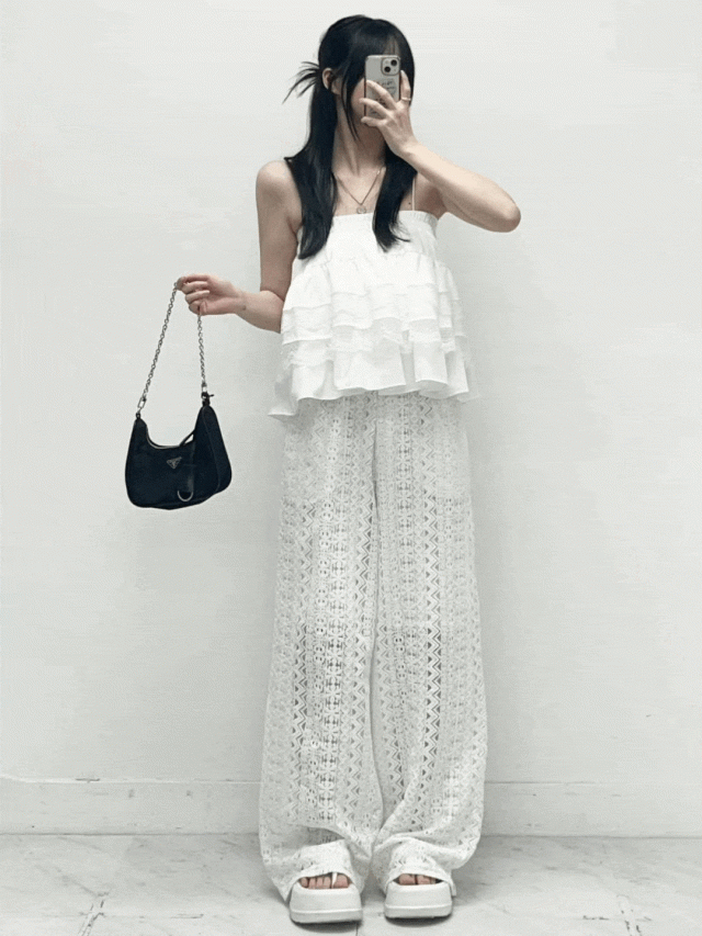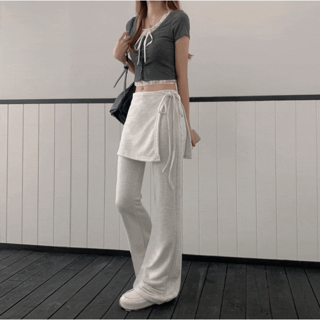 綁帶半身裙配喇叭褲【4色入】【可拆卸】