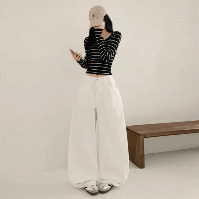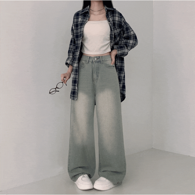 高腰鈕扣寬牛仔褲【3色入】【S-XL】