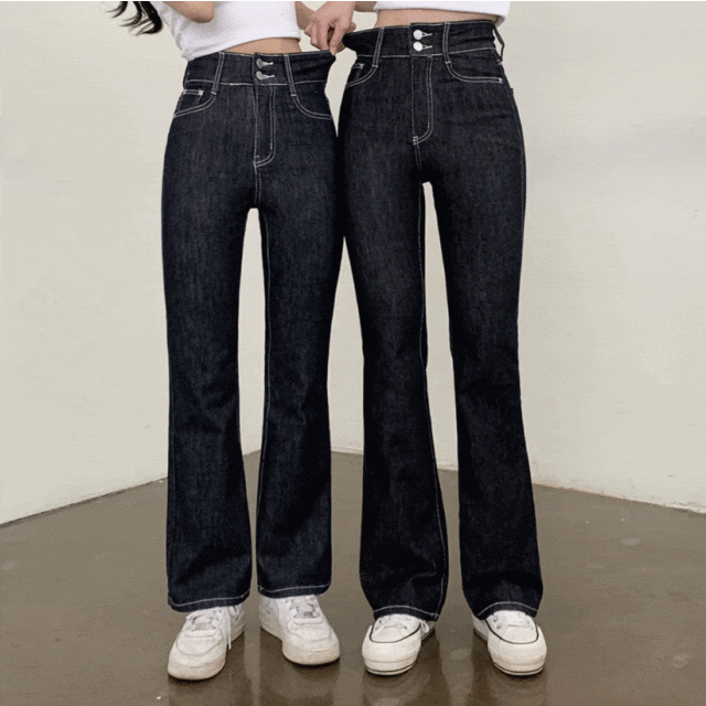 高腰修身雙扣縫線牛仔褲【S-XL】【2色入】