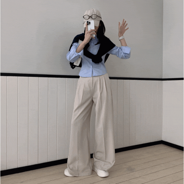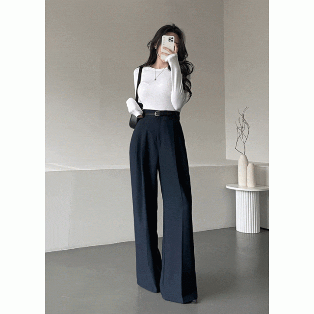 高腰兩針褶半寬西褲【S-2XL】【4色入】