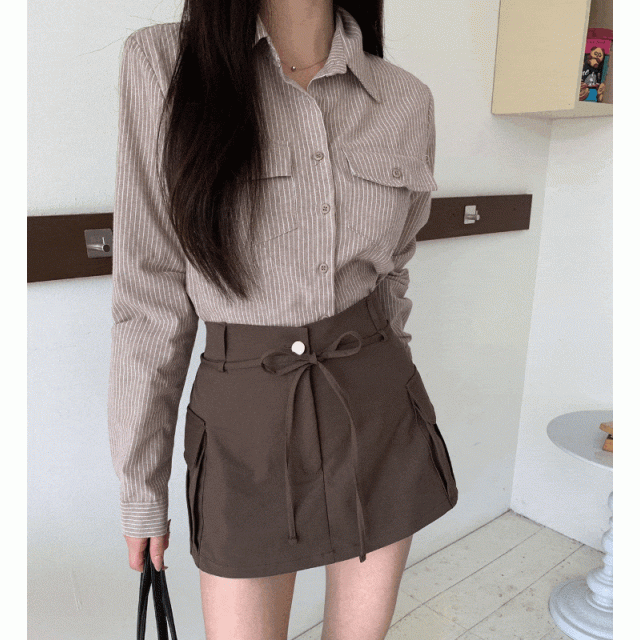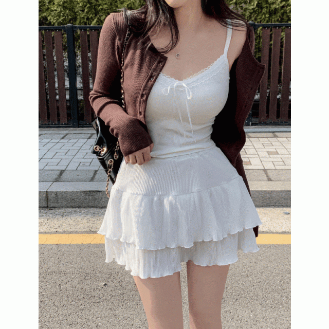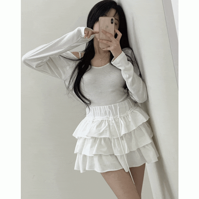 綁帶半身裙配喇叭褲【4色入】【可拆卸】