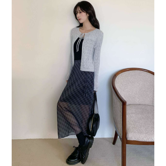 格紋雪紡透視長裙【2色入】