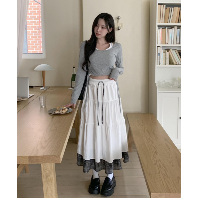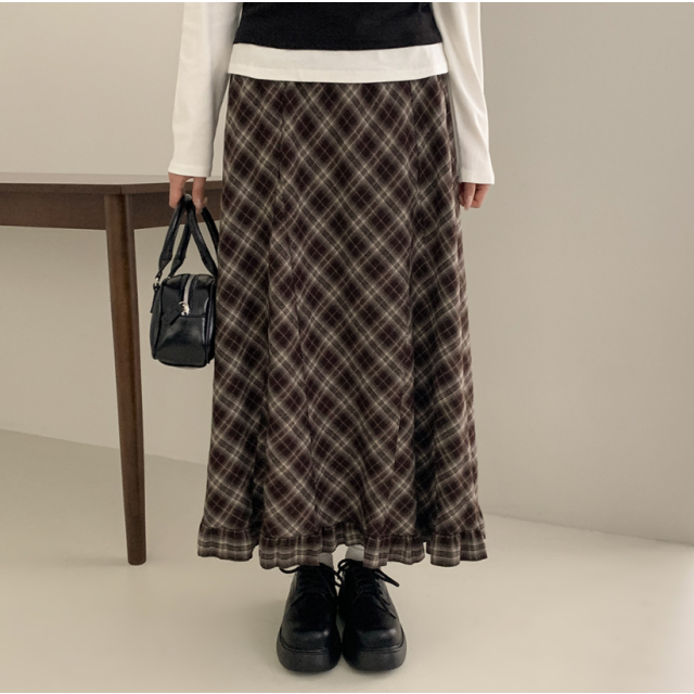 格紋下擺荷葉邊長裙【3色入】