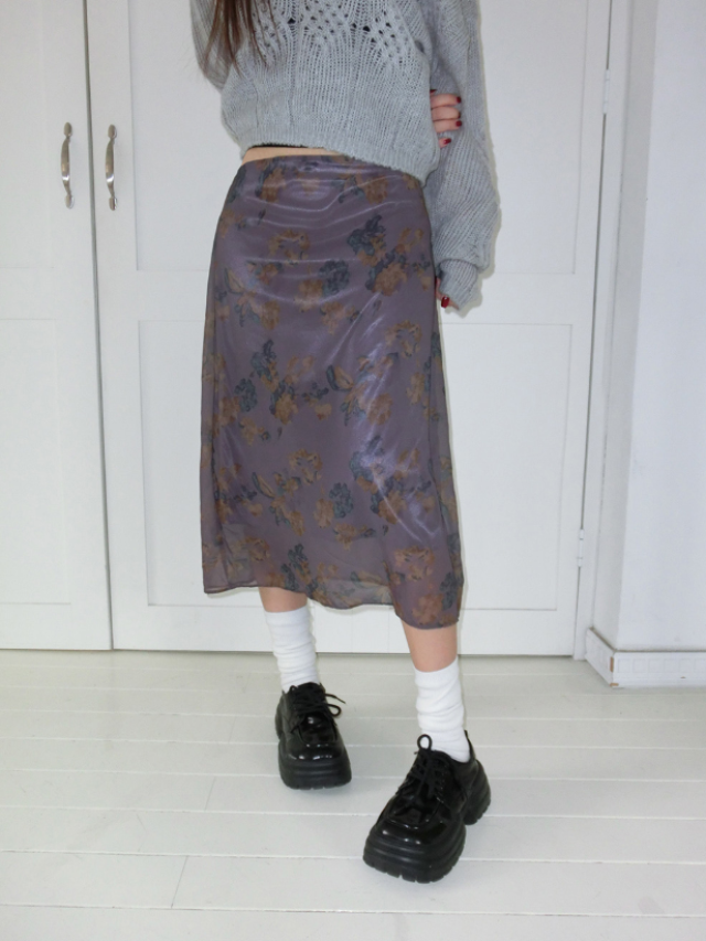 復古油畫感碎花中長裙【3色入】