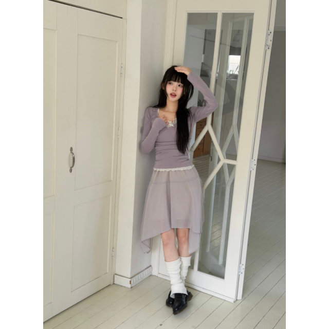 可愛拼接蕾絲綁帶長裙【3色入】