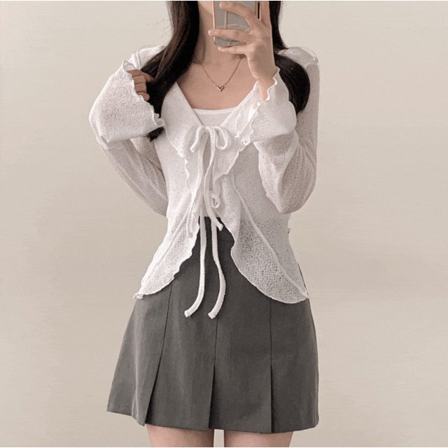 荷葉邊蝴蝶結透薄外套【4色入】 - 現貨